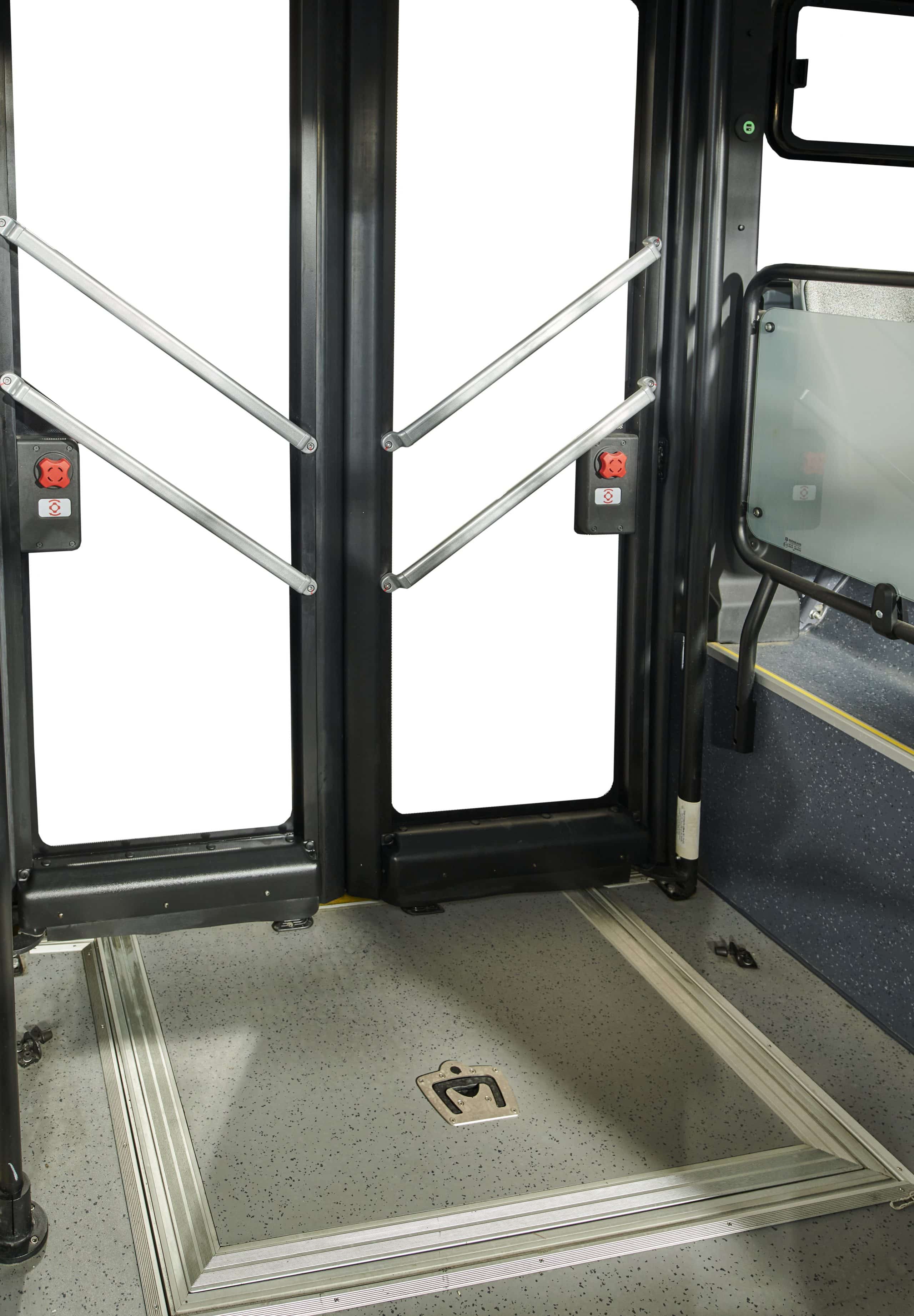 2 Fahrgasttüren in 1+2+0 Anordnung, pneumatischer Türantrieb